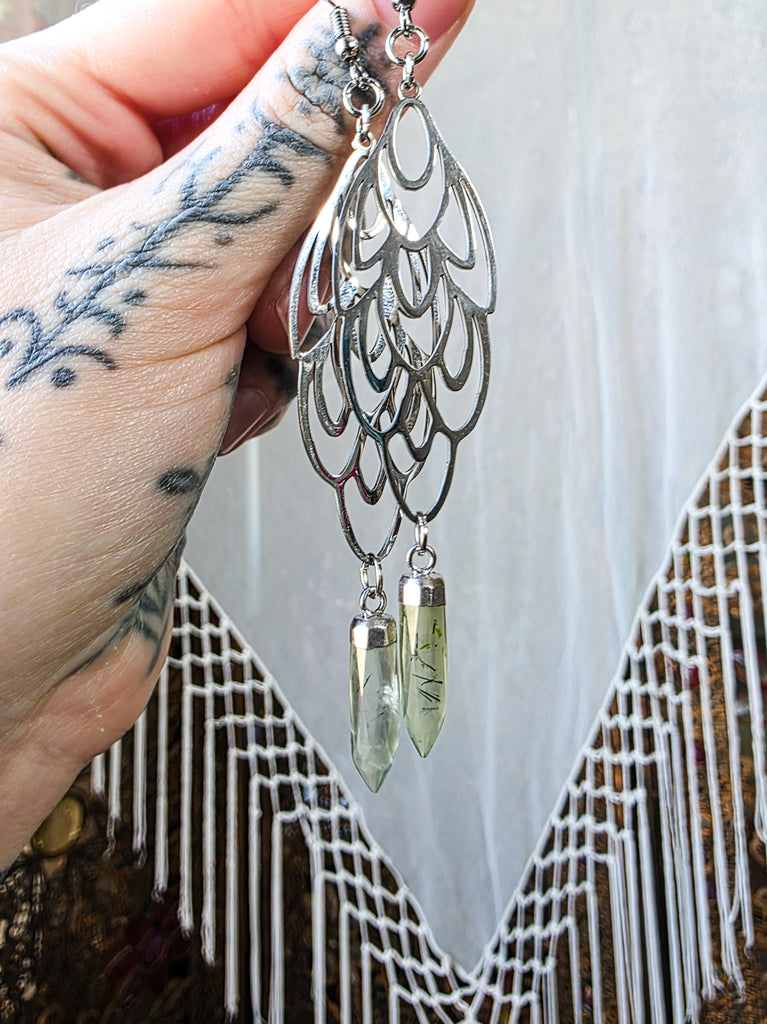 Silver Ornamental Peridot Crystal Earrings